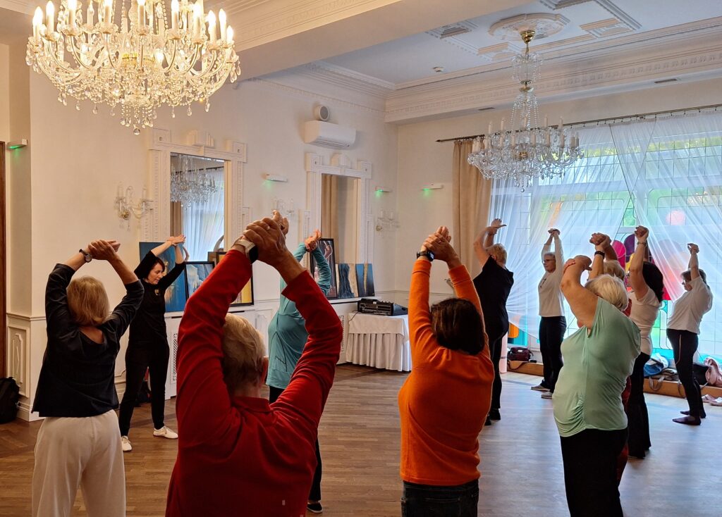 zapobieganiu upadkom. 7.10. 2025 r. po kilkuletniej przerwie, ku wielkiej radości słuchaczy wróciły do SUTW zajęcia z Tai Chi . Od pierwszych chwil pod okiem instruktorki Justyny Kapias w skupieniu wykonywaliśmy ćwiczenia.