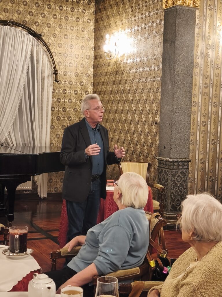 Dnia 20 listopada 2025 r., odbyło się kolejne spotkanie słuchaczy Siemianowickiego Uniwersytetu Trzeciego Wieku w Siemianowickim Centrum Kultury „Willa Fitznera”. Tematem spotkania były ” anegdoty filmowe i teatralne”. Tym razem gościem, który prowadził wykład był sam gospodarz-kierownik tej pięknej „perełki” jaką mamy w Siemianowicach Śl., Pan Krzysztof Bogdoł. Należy nadmienić, że Pan Krzysztof Bogdoł studiował aktorstwo, na jego koncie zawodowym jest liczny dorobek ról zarówno teatralnych jak i filmowych, do których między innymi należą: