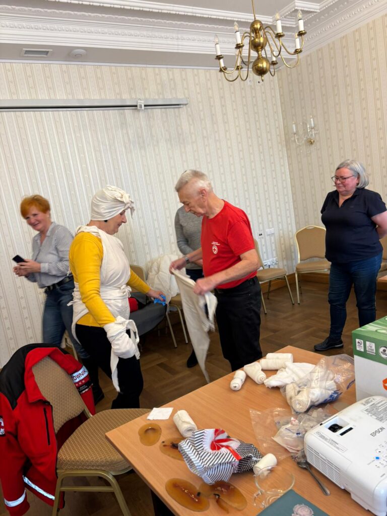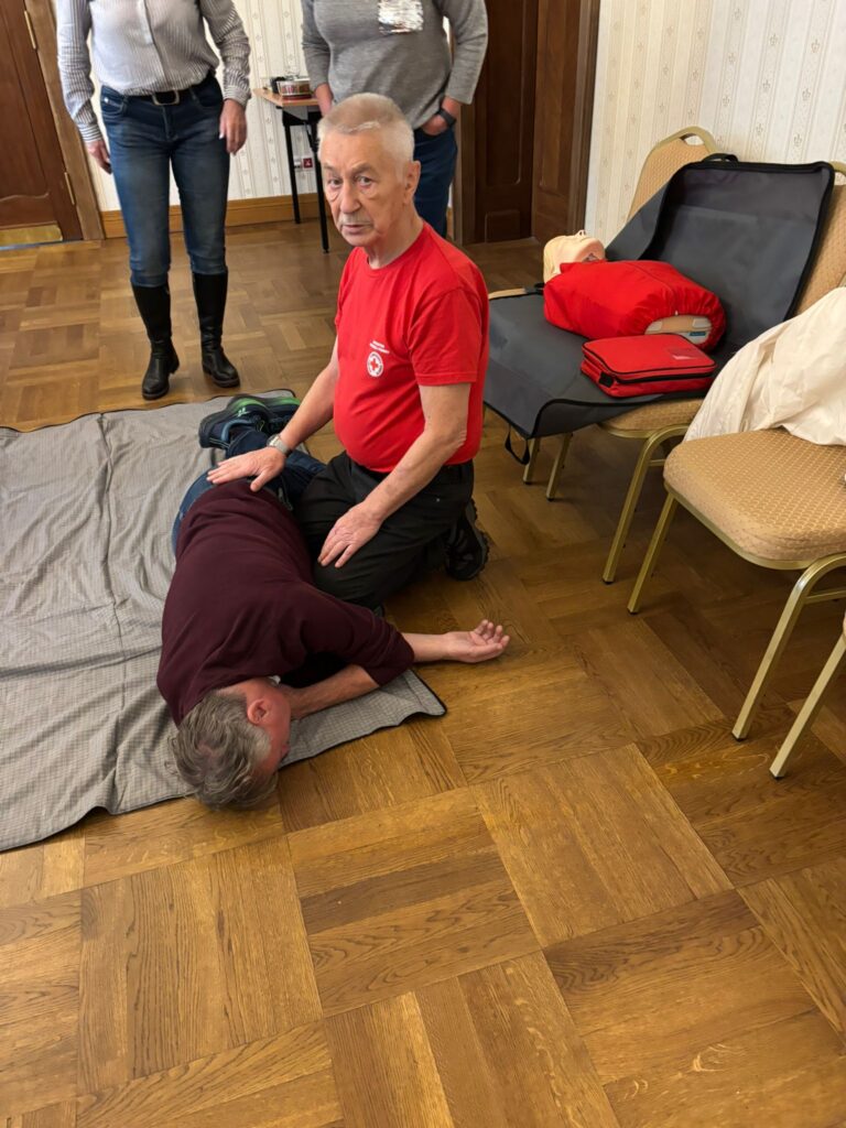 Uczestnicy mieli również możliwość nauczyć się lub przypomnieć sobie jak udzielić pomocy i zabezpieczyć poszkodowanego w pozycji bezpiecznej. Samodzielne zabezpieczali rany i wykonywali opatrunki. Ratownik przekazał wszystkie instrukcje jak udzielić pomocy w przypadku zatrzymania oddechu i krążenia, czyli jak przeprowadzić sztuczne oddychanie, oraz jak używać dostępnego defibrylatora.