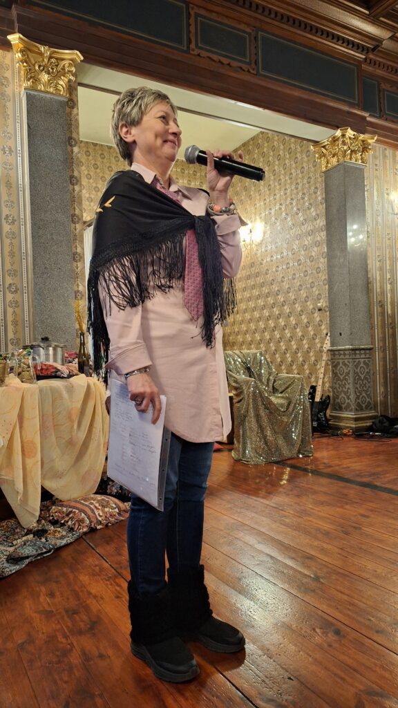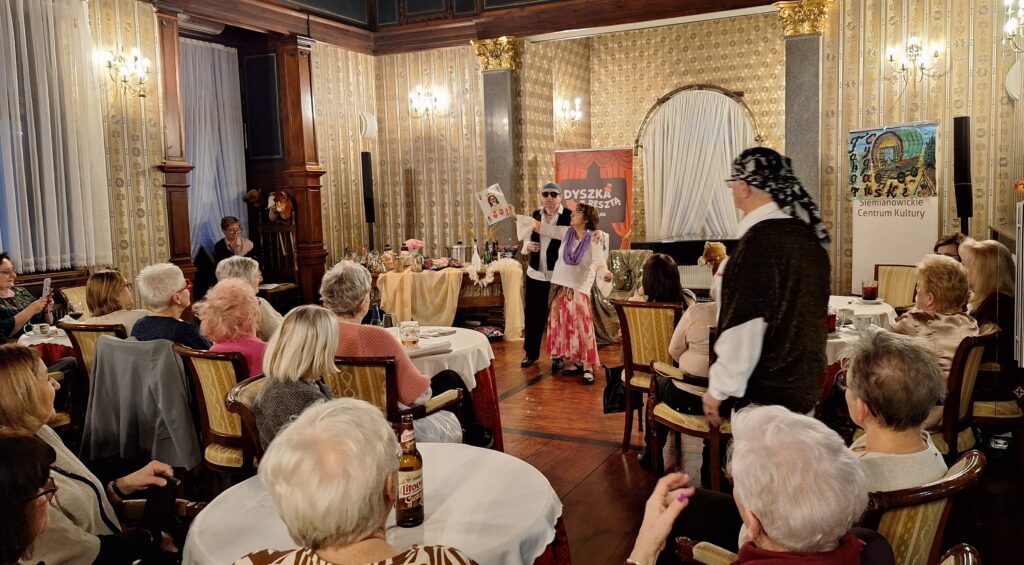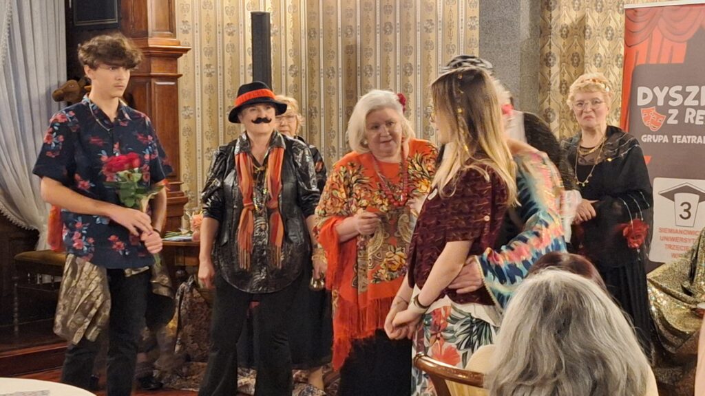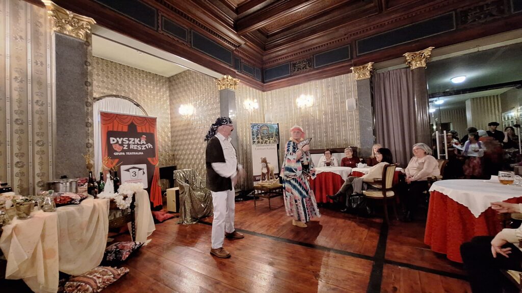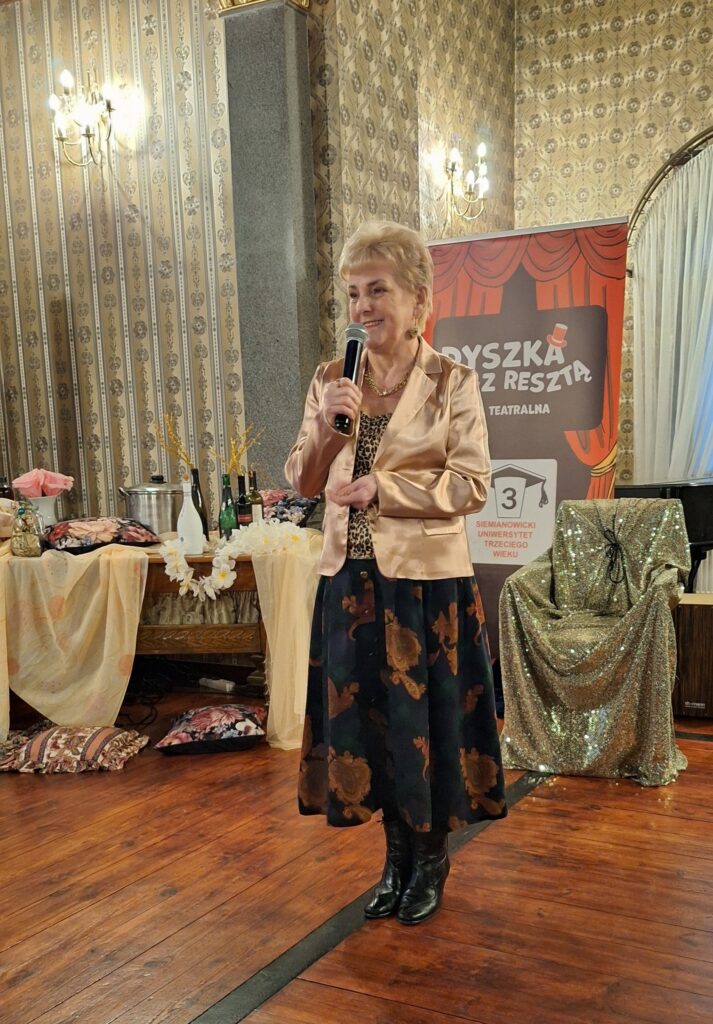 22.01.2026 roku – słuchacze SUTW karnawałowym krokiem podążają do Willi Fitznera na ulubione czwartkowe spotkanie. Tym razem na zaproszenie uniwersyteckiej Grupy Teatralnej „ Dyszka z Resztą”. Szanownych artystów i widzów serdecznie powitała Małgorzata Węgiel- Prezes SUTW. Uczestników spotkania swoją obecnością zaszczyciła Renata Jaroń-Guzy.