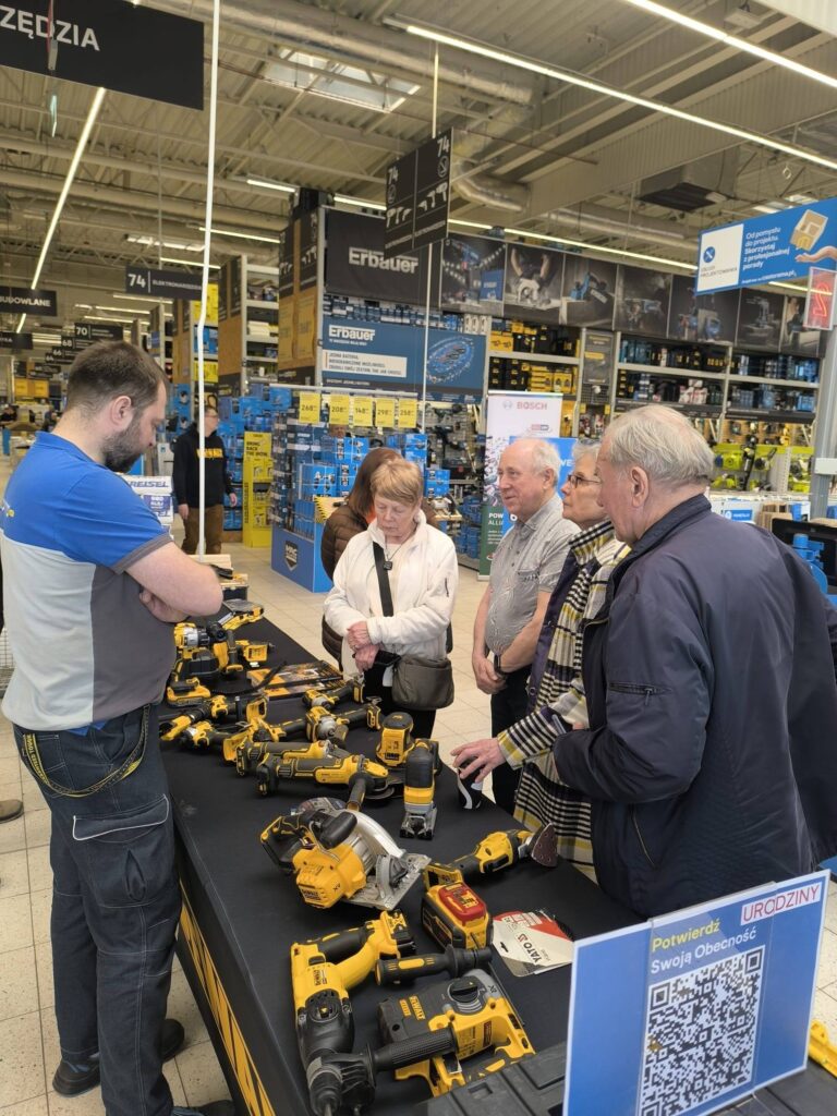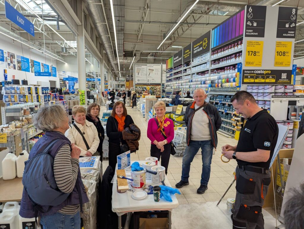 Później przywitał nas przemiły kierownik, pan Sylwester a następnie oprowadził po różnych działach. W każdym dziale oczekiwał na nas ktoś miły, aby zaprezentować nowinki techniczne i praktyczne porady a na koniec wręczyć nam jakieś upominki. W sumie otrzymaliśmy sporą dawkę wiedzy i sporo upominków. Przy okazji zrobiliśmy zakupy, każdy w/g potrzeb. Na koniec wspólne fotki i znów po kawałku bardzo smacznego tortu. Bardzo dziękujemy kierownictwu Castoramy w Rudzie Śląskiej za tak miłe przyjęcie i sporą dawkę praktycznej wiedzy.