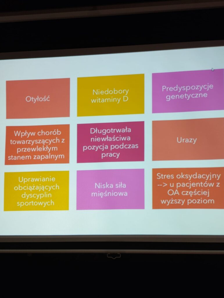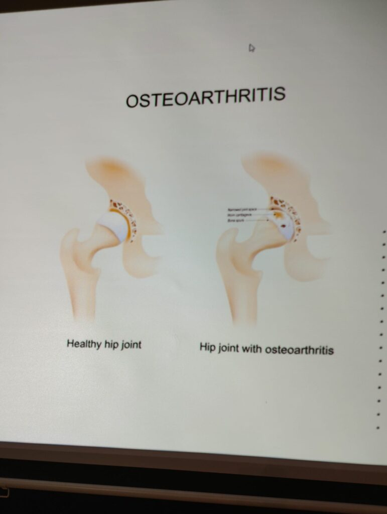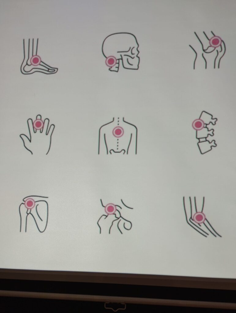 23 kwietnia spotkaliśmy się w Muzeum, aby wysłuchać wykładu pani Weroniki Leszner (licencjat pielęgniarstwa), na temat naszych stawów i problemów z nimi. Choroba zwyrodnieniowa stawów, to najczęściej występujące schorzenie, doprowadzające w konsekwencji do niesprawności, obniżenia jakości życia .Cechy charakterystyczne to-ból, sztywność poranna stawów, zmniejszenie ruchowości. Najczęściej dotyczy stawów ręki, kolanowych i biodrowych oraz kręgosłupa-lędźwiowy i szyjny. Są różne czynniki ryzyka: otyłość, niedobór wit.D, niewłaściwa pozycja podczas pracy, urazy. Choroba objawia się bólem, szczególnie po obudzeniu, ograniczeniem ruchomości w stawie, zaburzenia chodu, przykurcze.